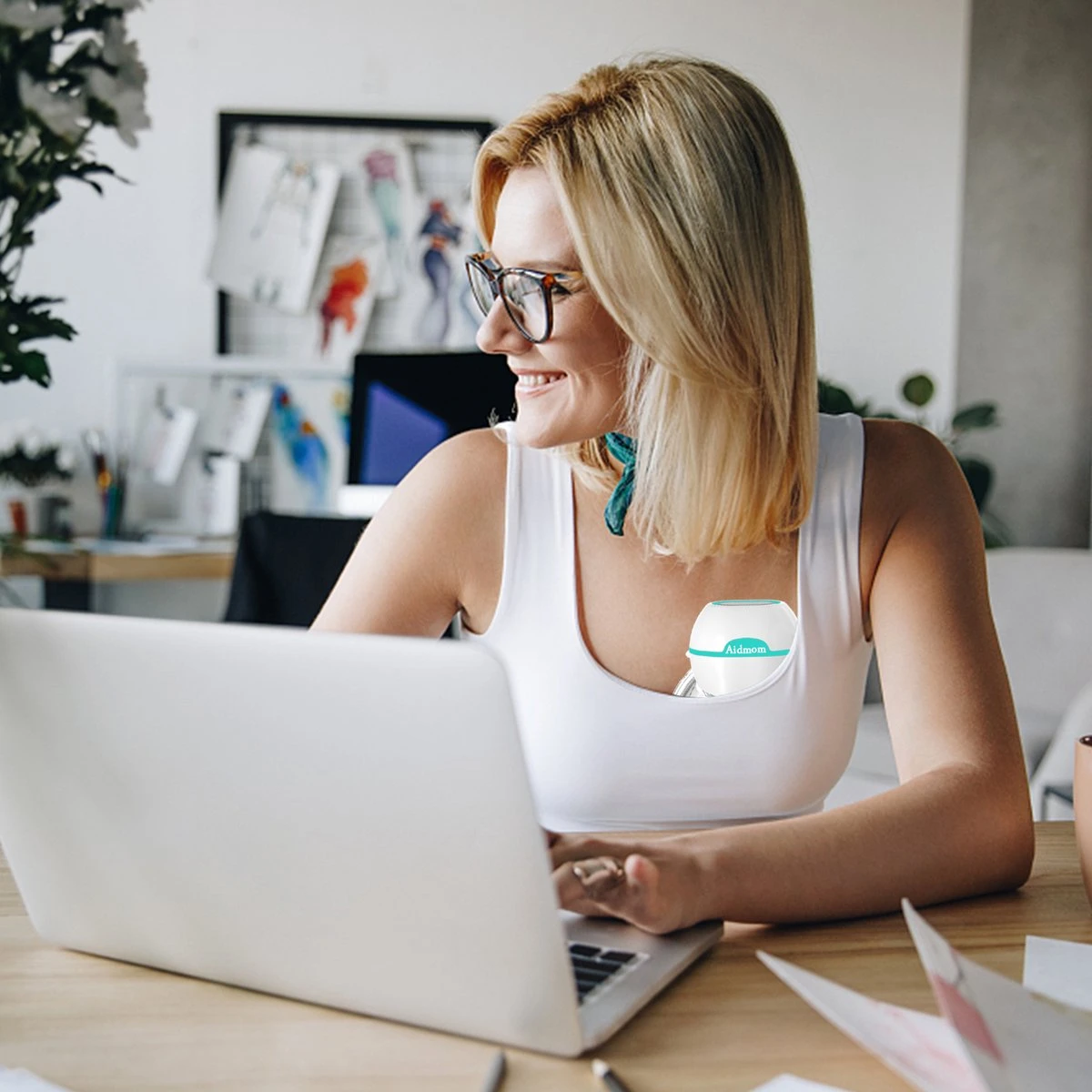 De dubbele Aidmom borstkolf is een zeer handige, draadloze en draagbare borstkolf. Deze dubbele kolf biedt een mobiele kolfmethode die de kwaliteit en effectiviteit van een niet-mobiele kolf behoudt, zodat je snel en efficiënt kunt kolven naar jouw wens. Het aanleggen van de kolf gaat zeer snel, daarna doet de kolf haar werk. De melk wordt opgevangen in de borstschild en is makkelijk over te schenken in flesjes of zakjes. Montage is eenvoudig en rechttoe rechtaan; alle onderdelen kunnen gedemonteerd worden wat eenvoudige reiniging mogelijk maakt. De onderdelen kunnen worden ontsmet in kokend water, magnetron of UVC sterilisatie.