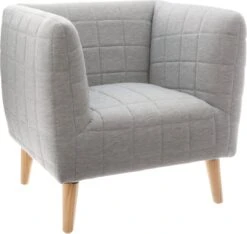 - Grijze houten fauteuils.