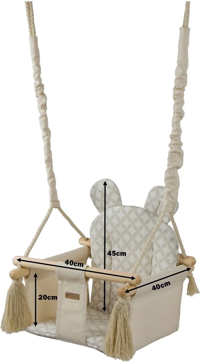 In een combinatie van hout en hoogwaardige katoenen stof staat de schommel als een natuurlijk product voor het comfort en de veiligheid van je kleintje.
