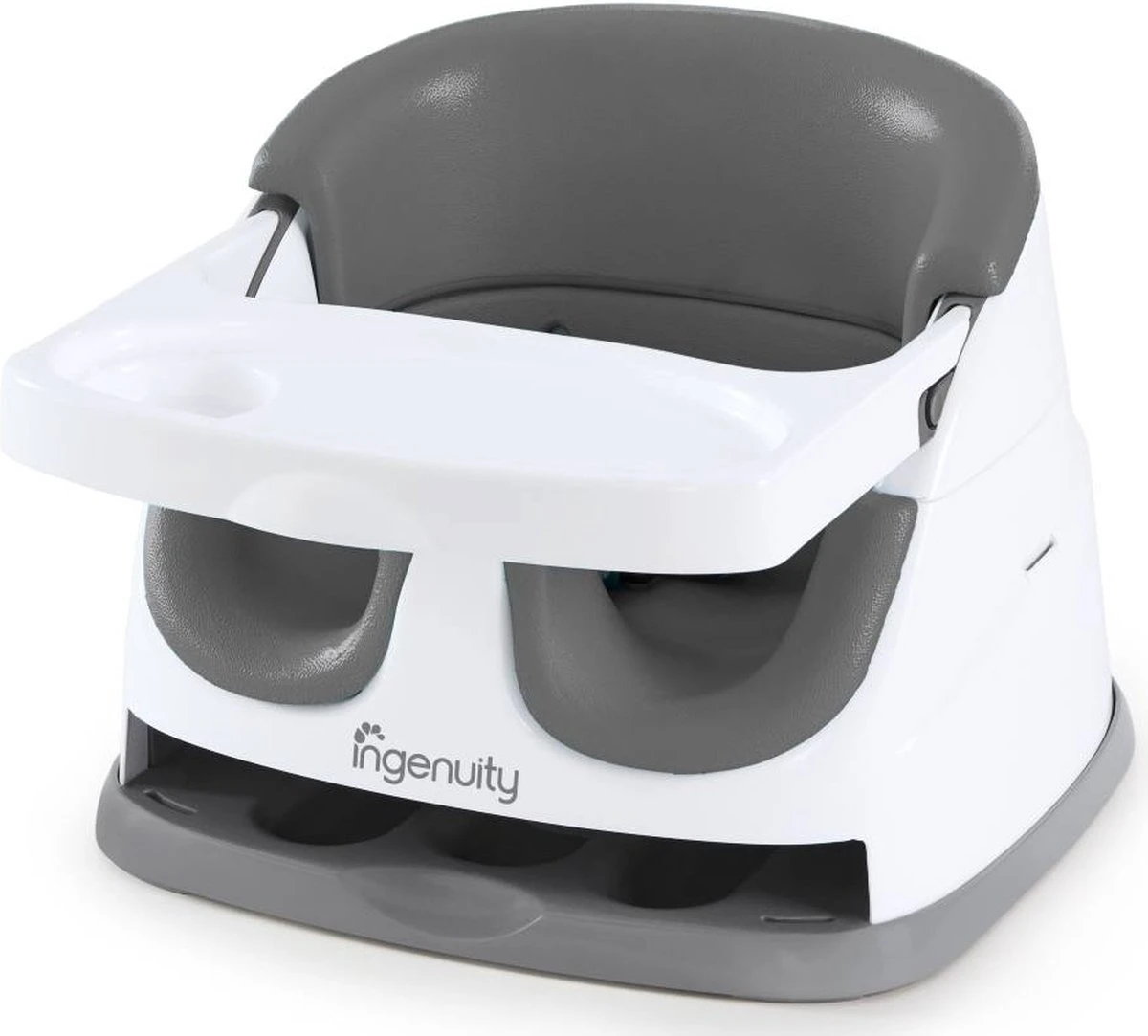 De Ingenuity Baby Base 2-in-1 is een leuk, comfortabel zitje met blad waarin je kindje leert om zelfstandig recht te zitten en dat tevens kan dienen als handige en veilige stoelverhoger. Ideaalvoor thuis, op vakantie, het kinderdagverblijf, bij opa en oma, noem maar op!De Ingenuity Baby Base 2-in-1 heeft 2 gebruiksmogelijkheden. Allereerst is het een handig zitje voor op de vloer, waarin je kind zelfstandig recht kan leren zitten.