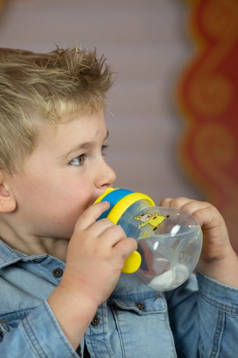 - Helpt bij het aanleren van zuig- en slikbewegingen