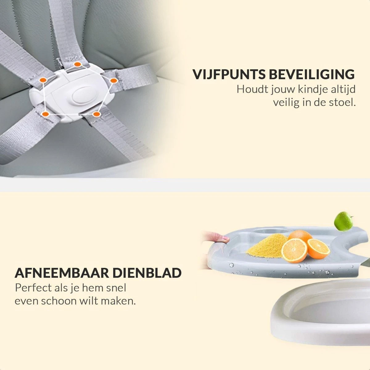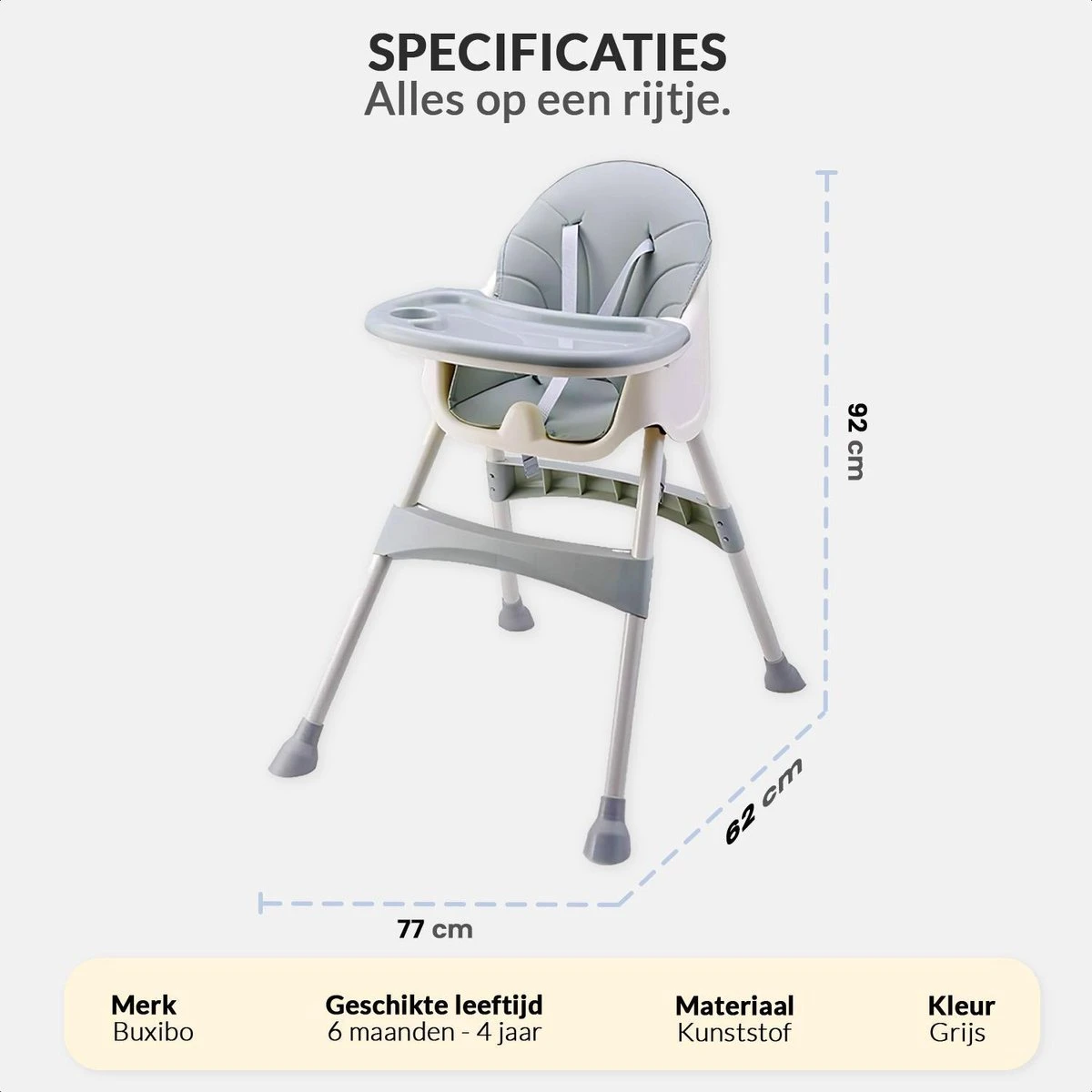 Met de Buxibo een babyzitje/kinderstoel in één kan je heel vroeg al beginnen om met je baby aan tafel te zitten. Door de meervoudige hoogteverstelling zit je kindje altijd op ooghoogte. De lichtgewicht kinderstoel is compact en neemt dus niet veel ruimte in beslag. Heb je even geen ruimte voor de kinderstoel, dan kan je het zitje loskoppelen en los op een stoel plaatsen.