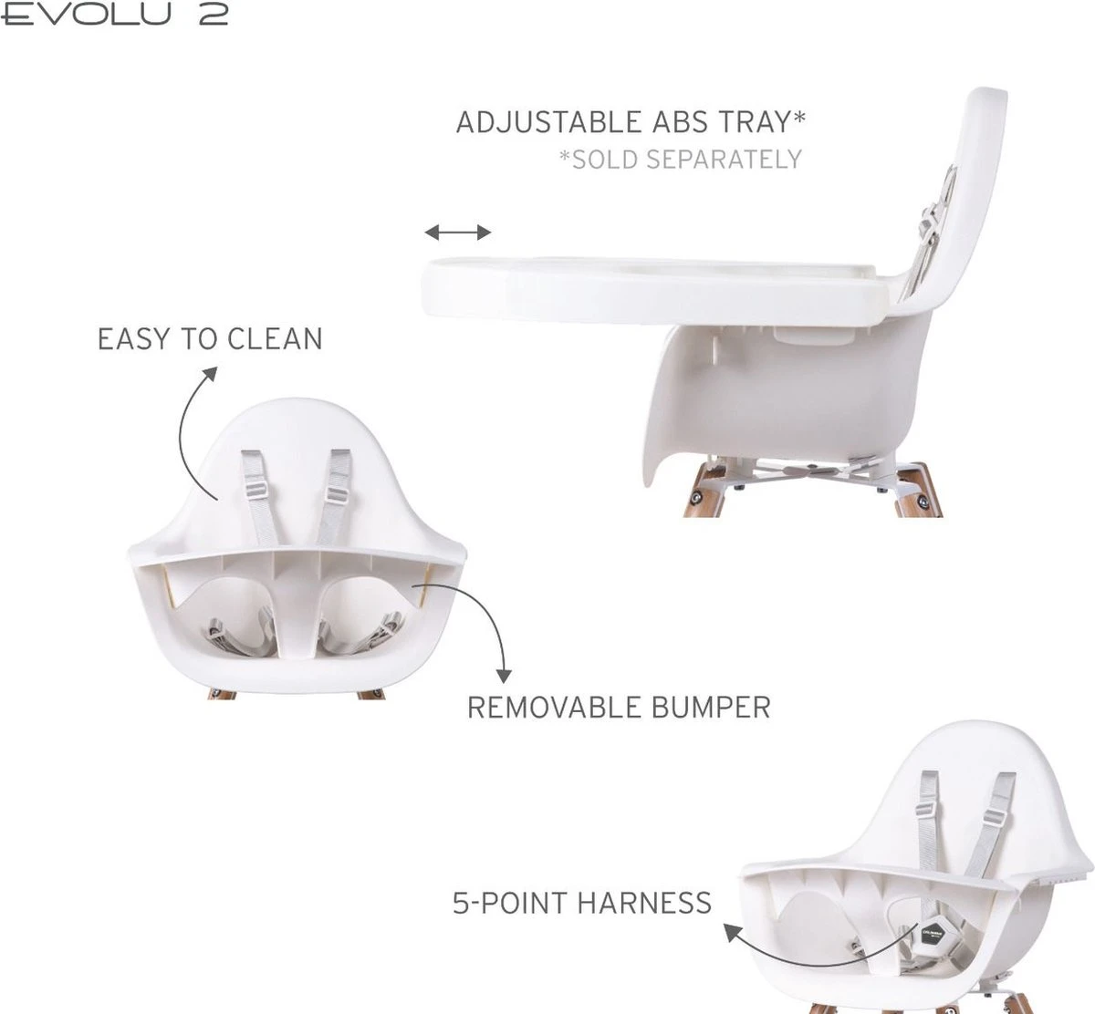 Met behulp van het (los verkrijgbare) eetblad zit je kindje extra veilig in de Childwood Evolu 2-in-1. Je kindje kan niet uit de kinderstoel klimmen dankzij de 5-punts veiligheidsgordel. De Childwood Evolu 2-in-1 Kinderstoel voldoet aan de Europese veiligheidsnorm EN 14988.