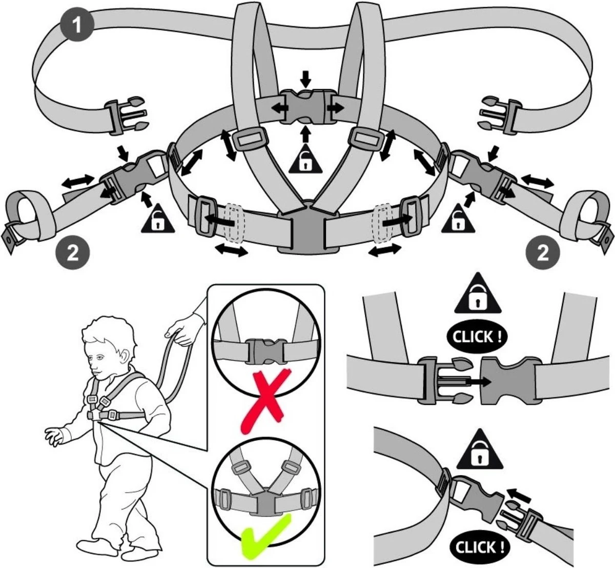 - Te gebruiken als looptuigje en kinderstoel tuigje.