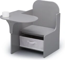 Deze mooie grijze stoel met schrijfbladen opslagruimte onder de stoel, geeft uw kind een plaats om te leren en te groeien