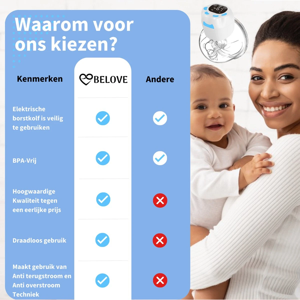 Wil je je pasgeboren baby de allerbeste verzorging bieden? Dan is de handsfree en draagbare Borstkolf van Belove het product voor jou.