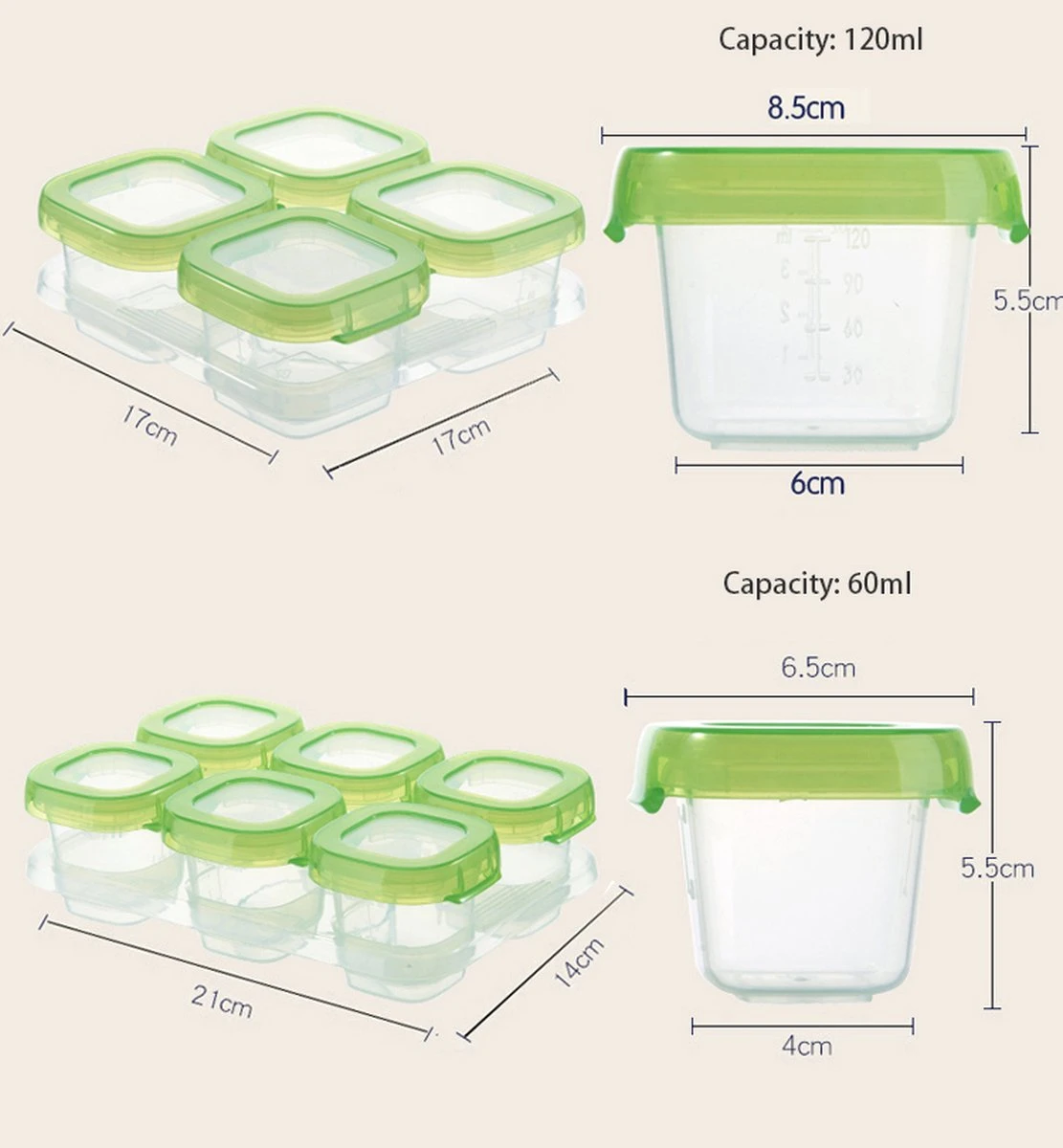 De Fiorire bewaarbakjes voor babyvoeding zijn speciaal ontworpen om het een stuk makkelijker te maken om eigen gemaakte hapjes mee te nemen voor onderweg of te gebruiken voor thuis. Met dit samengestelde pakket van 4 bakjes met 120 ml inhoud en 6 bakjes met 60 ml inhoud heeft u een fijne basis. De bakjes zitten in een tray waardoor alles goed recht blijft staan in de vriezer en deze tray is stapelbaar. Met gemak pakt u de gewenste hoeveelheid uit de tray en genieten maar!