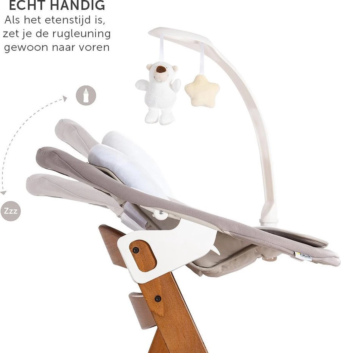 - 5-in-1 voordeelset: Ontvang de Hauck kinderstoel, de wipstoel, de veiligheidsgordel, de speelboog en de stoelverkleiner in één set.