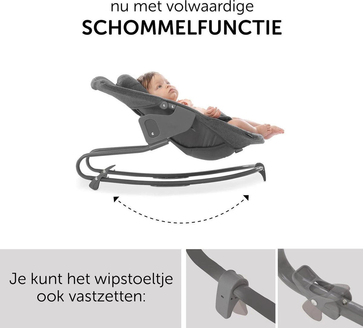 Hiermee kun je de kinderstoel al vanaf de geboorte gebruiken, zodat je ook je pasgeboren baby bij het eten op ooghoogte bij je hebt. De met één hand verstelbare rugleuning is nu nog vlakker voor een betere ligpositie. De tijk uit 100% katoen zorgt voor een perfect comfort, ook voor de allerkleinsten. Met het bijgeleverde frame kan je de bouncer ook als losstaand wippertje gebruiken. De schommelfunctie werkt met speciaal ontworpen voetjes, die je natuurlijk ook vast kunt zetten.