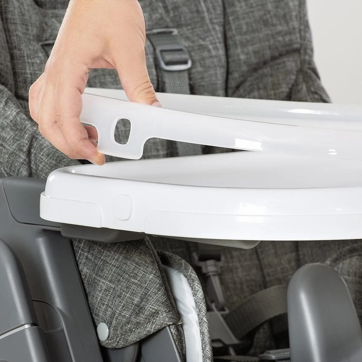 - Verwijderbaar eetblad – Het verstelbare dienblad kan met één hand verwijderd worden en mag ook in de vaatwasser.
