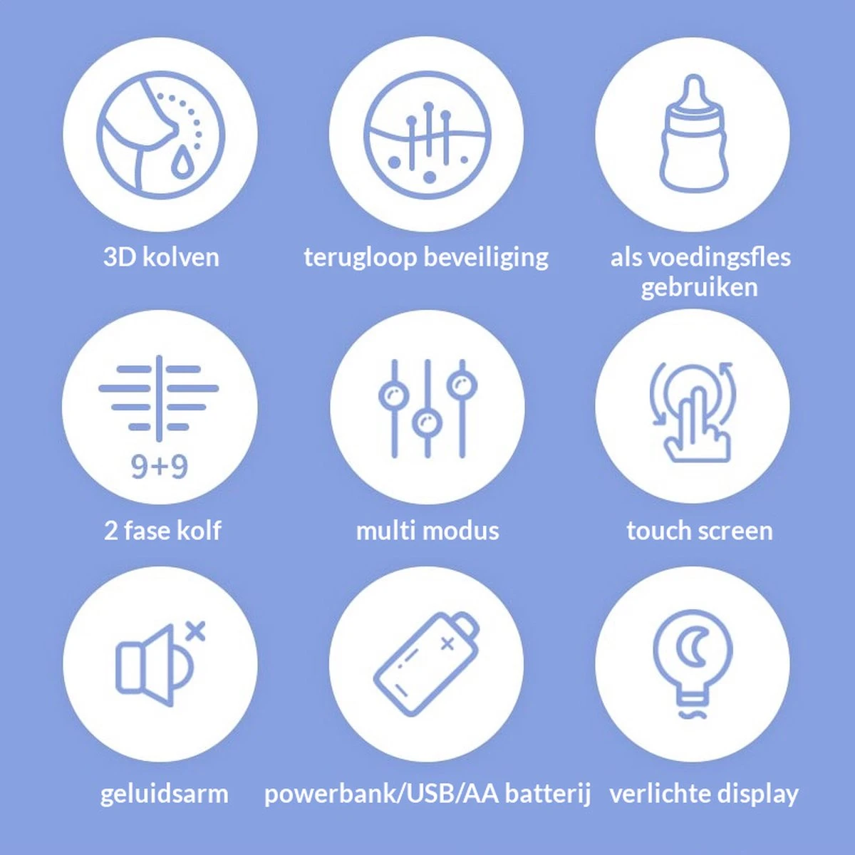 Dankzij de handige USB connectie kun je vrijwel overal kolven, samen met bijvoorbeeld een USB-powerbank (niet meegeleverd) ben je heel flexibel.
