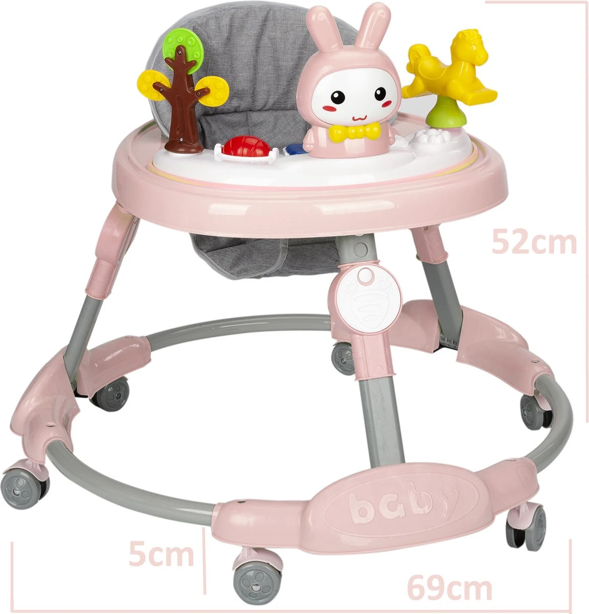 Deze loopstoel heeft een in hoogte verstelbaar frame en zitje. Hierdoor is dit loopstoeltje eenvoudig aan te passen naar de juiste hoogte voor jouw kleintje. De hoge rugleuning zorgt voor extra steun en comfort. Tevens is het complete zitje uitneembaar en makkelijk schoon te maken.
