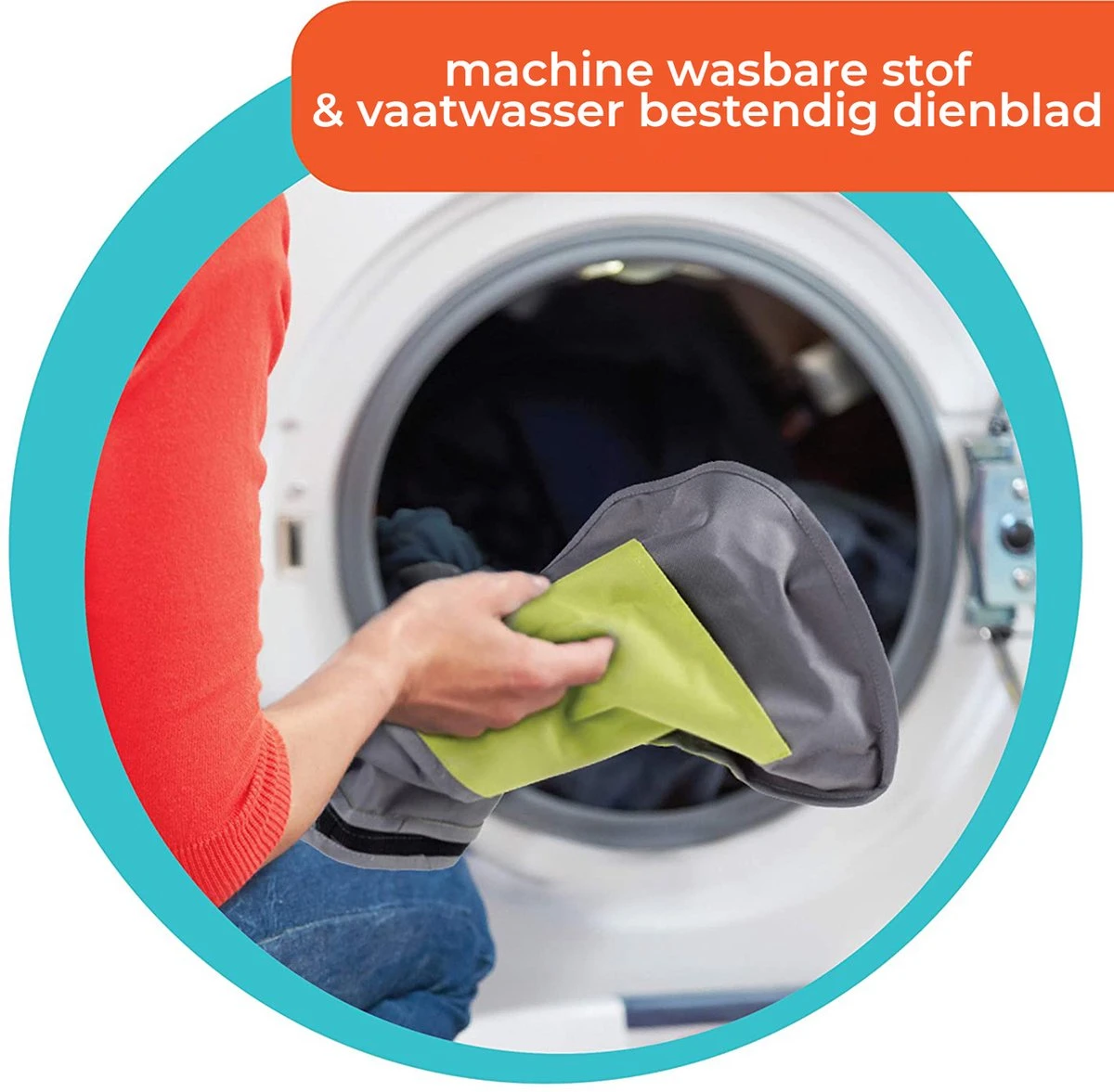 Het dienblad van hard plastic in deze hoge stoel voor baby’s en peuters biedt een schone plek om te eten en is stevig genoeg zodat het eten niet in de schoot van de baby valt. Het is bedoeld om te worden gebruikt voor kinderen van 6 maanden.