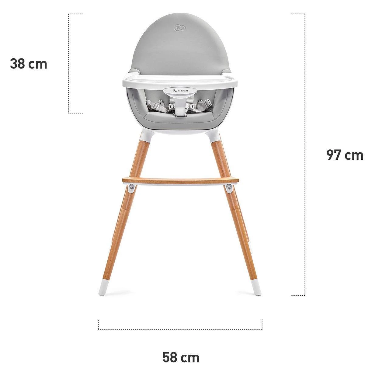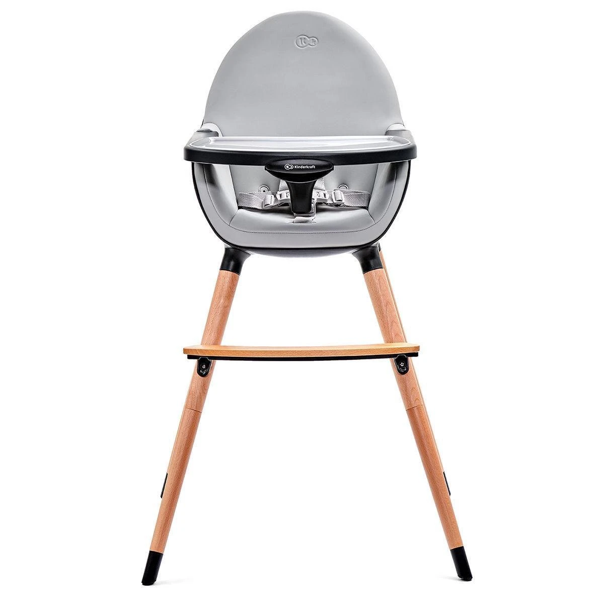 Deze luxe kinderstoel Fini van Kinderkraft is voorzien van een mooie ledere look zitting afgewerkt met massief houten poten. Het eetblad is handig in 3-posities instelbaar.