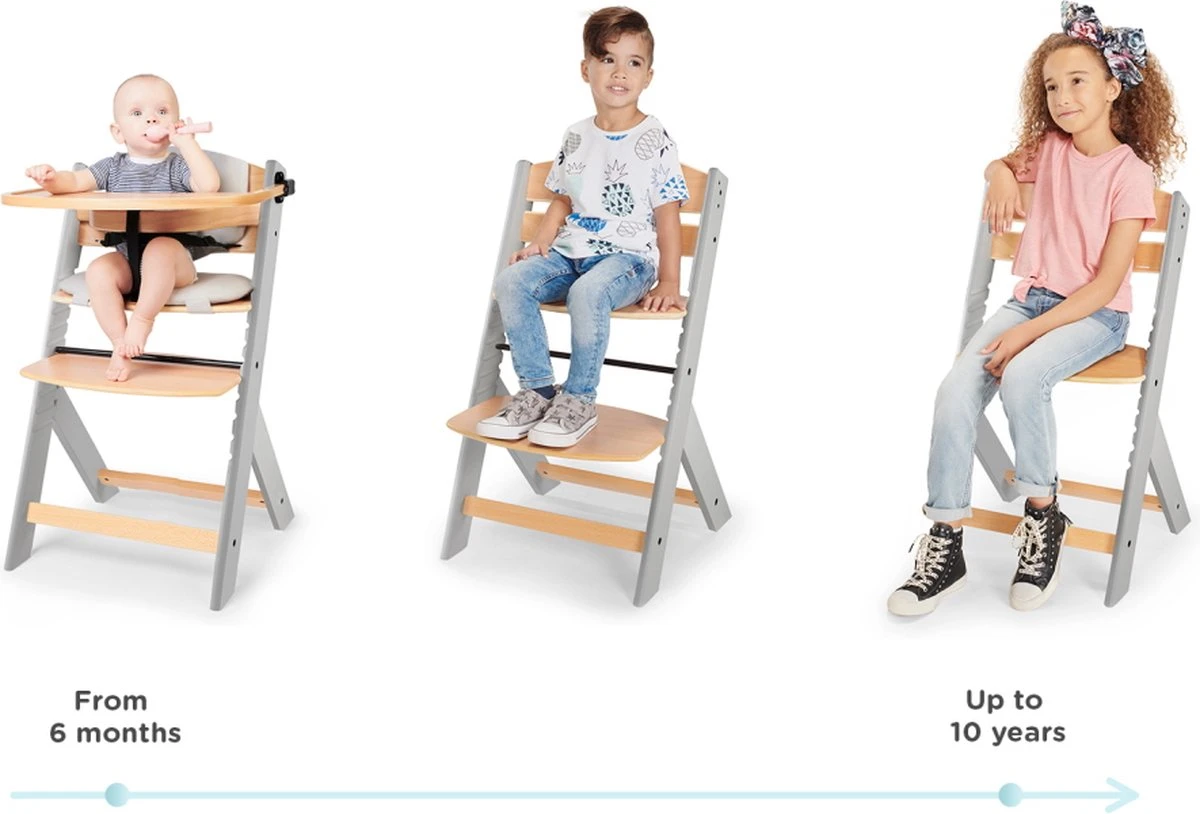 Is er een hoge kinderstoel die je kind meerdere jaren kan gebruiken? Inderdaad! Dat is ENOCK. Dit tijdloze meubelstuk is zowel een veilige en praktische kinderstoel als een ergonomische stoel voor oudere kinderen. Hoe is dat mogelijk? De zithoogte en voetensteun zijn verstelbaar, zodat je de stoel gemakkelijk kunt aanpassen aan de leeftijd en lengte van je kind. ENOCK is ontworpen met je gezin in gedachten – het is een stoeltje dat in je huis past en vervolgens kan worden gebruikt als speelstoel of bureaustoel voor je kind. Bovendien past het goed bij je keuken-, eet- of salontafel. Dankzij de geprofileerde rugleuning behoudt het kind een correcte houding tijdens het eten en kan het samen met de volwassenen aan tafel zitten. Het comfortabele kussen dat bij de stoel wordt geleverd, houdt je kindje comfortabel terwijl hij/zij eet en speelt.