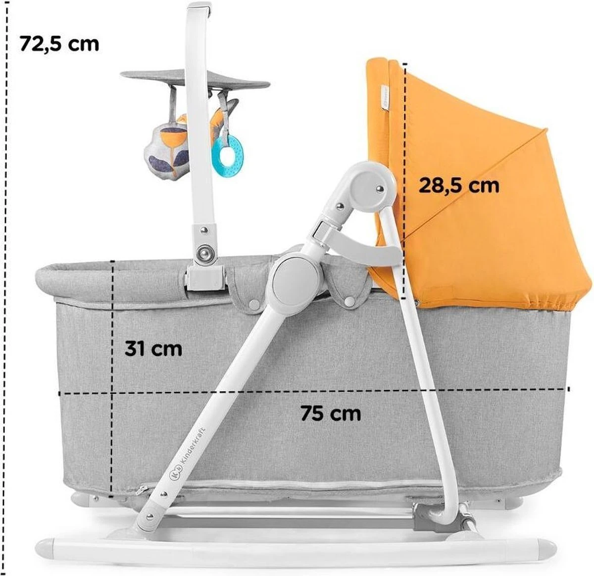 - De grote kap beschermt je kind tegen zon en wind – je kunt de wieg-wipstoel zelfs buiten neerzetten!