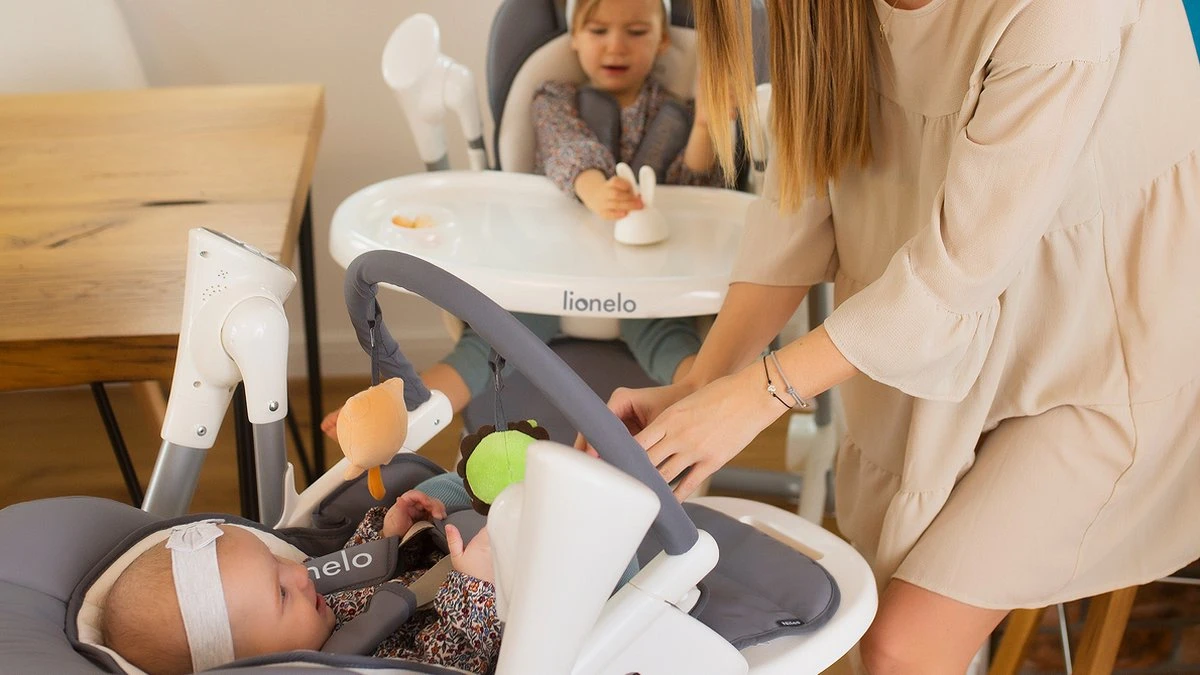 Dankzij een speciaal ontwerp verandert ons product snel van een schommelstoel in een voederstoel. Hierdoor is Niles jarenlang een investering – het product groeit met het kind mee!
