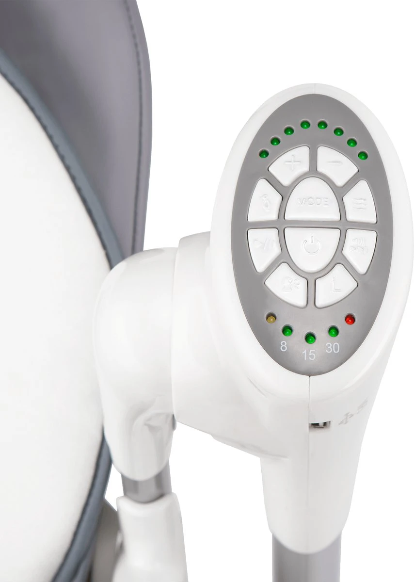 Applicatie voor het bedienen van de stoel vanaf de telefoon, beschikbaar om te downloaden in officiële winkels voor Android- en iOS-apparaten. Dankzij dit kan de ouder niet alleen op afstand de schudsnelheid wijzigen, maar ook de muziek in- of uitschakelen of een timer instellen.