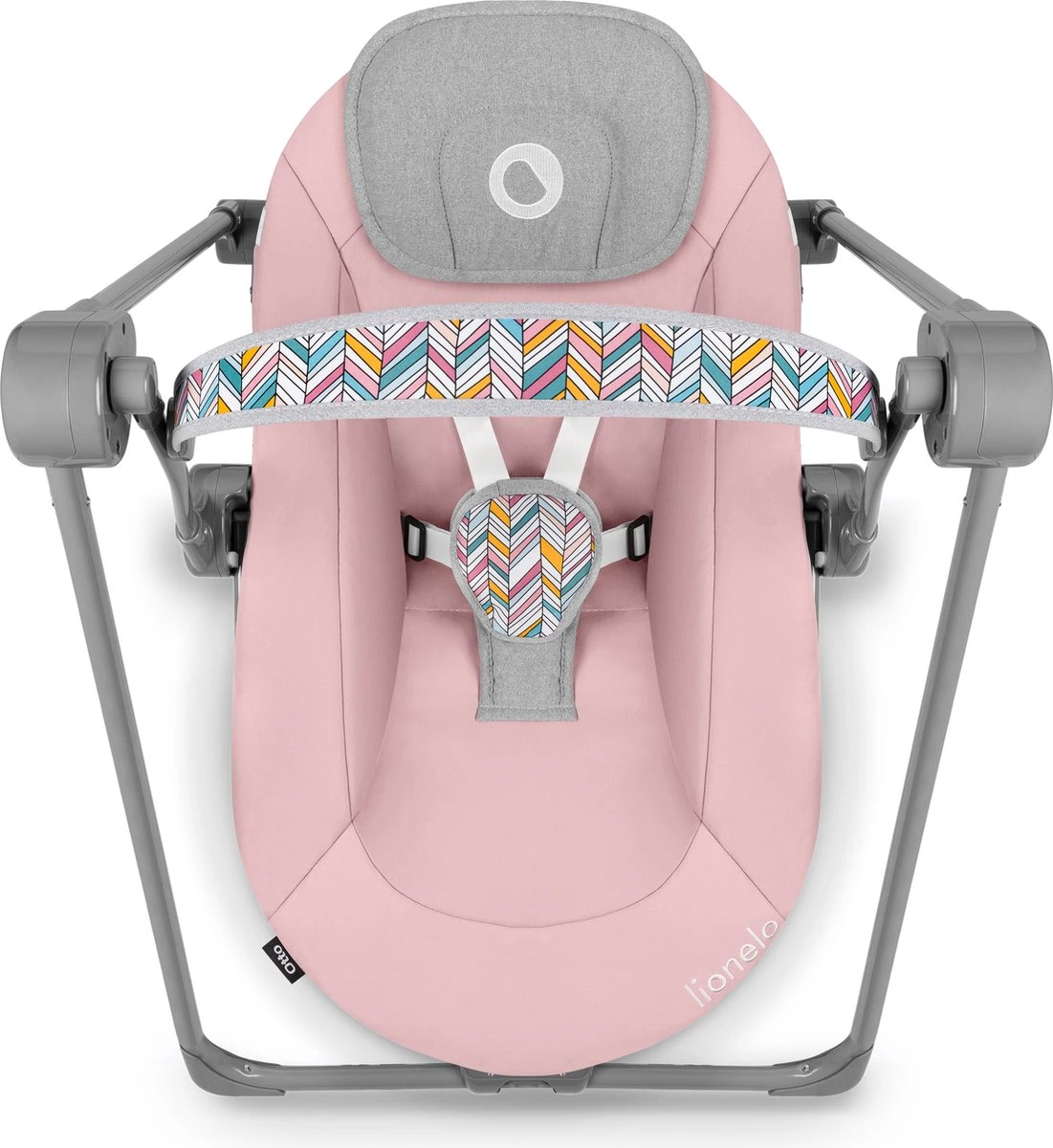 Op de boog en de gordelhoes is een speciaal ontworpen print op basis van contrasterende kleurencombinaties aangebracht, waardoor deze de aandacht van de baby trekt.