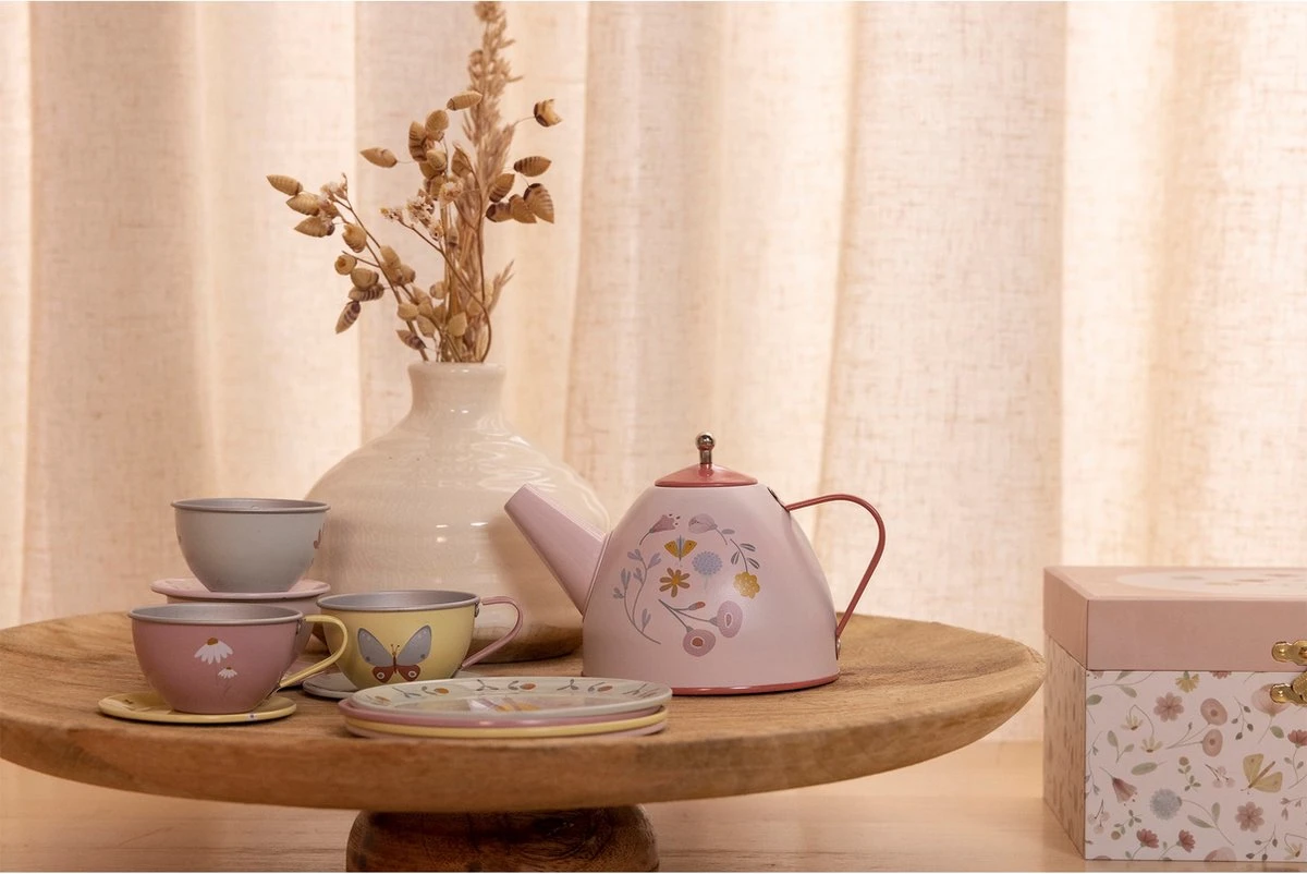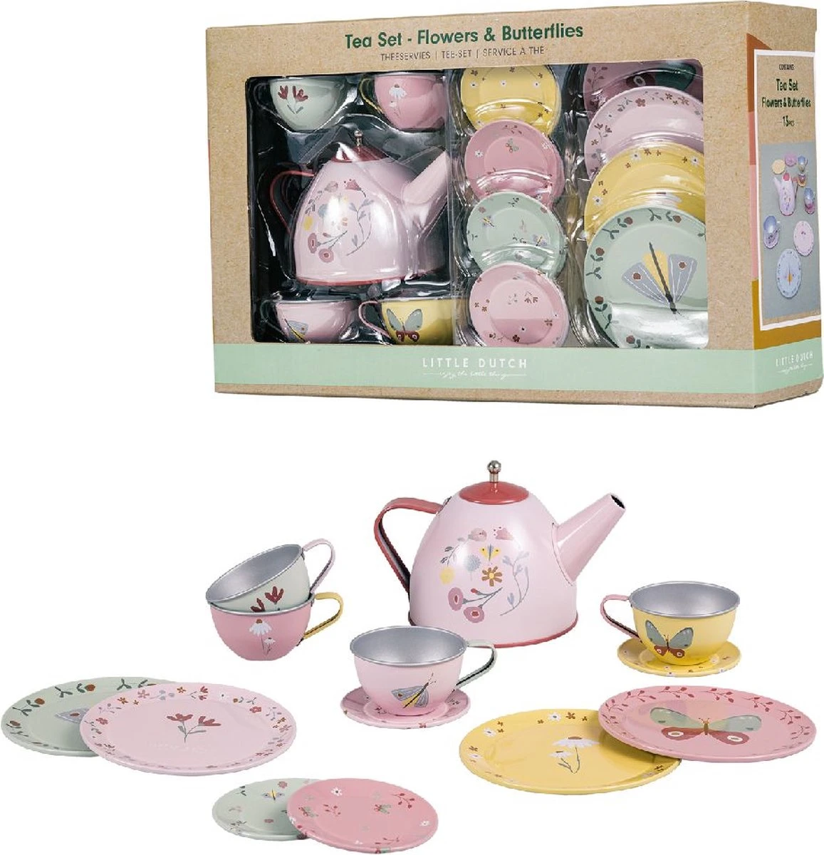 Een theekransje is niet compleet zonder dit geweldige Servies van Little Dutch Met dit schattige tinnen theeservies speelt je kind een geweldig rollenspel. Dit theesetje versierd met bloemen en vlinders prikkelt de fantasie van kinderen en stimuleert de fijne motoriek.