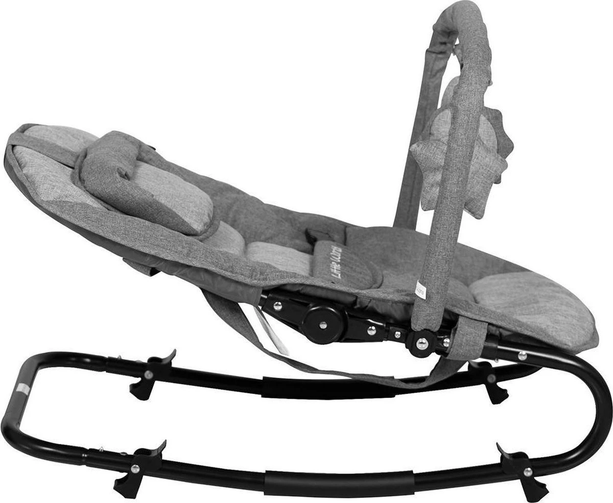 In deze Baby relax Wipstoel van Little World zal je kleine zich uren kunnen vermaken. De wipstoel is uitgevoerd in een mooie melange bekleding. De wipstoel wordt compleet geleverd met speelboog en hoofdkussentje.