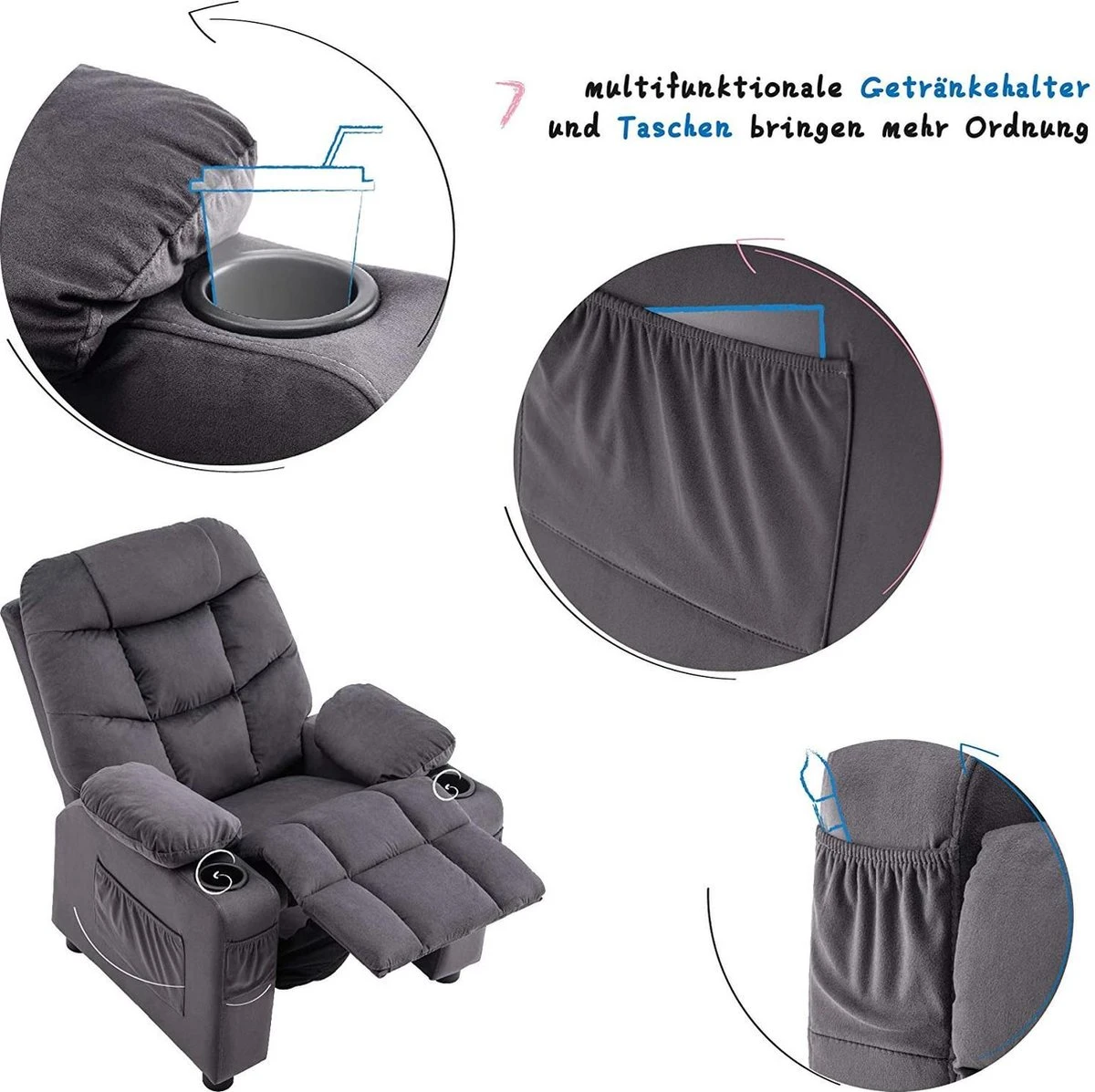 Dankzij de leuke kleur is hij de absolute blikvanger overal. Niet alleen geschikt voor de kinderkamer, maar ook voor gebruik in de woonkamer naast een bank voor volwassenen. Ligpositie: rugleuning kan tot 130 graden een brede aanpassing van de rugposities worden ingesteld. De voetensteun kan door de veren worden opengeklapt en ingeklapt.