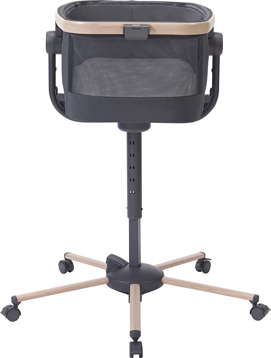 De Alba bevat moderne elementen van hout en is voorzien van Eco Care, 100% gerecyclede zachte en ademende stoffen. Voor het vervaardigen van de stoffen bekleding van de Alba zijn 53 plastic flessen gebruikt. Met zijn uiterst mobiele ontwerp en een pedaal om de hoogte eenvoudig aan te passen, biedt de alles-in-één Maxi-Cosi Alba ouders de flexibiliteit om gedurende de dag in verschillende kamers samen met hun baby bezig te zijn. Telkens wanneer je op de rem trapt, kun je er zeker van zijn dat je baby of peuter precies op zijn of haar plek blijft, vlak naast mama of papa.