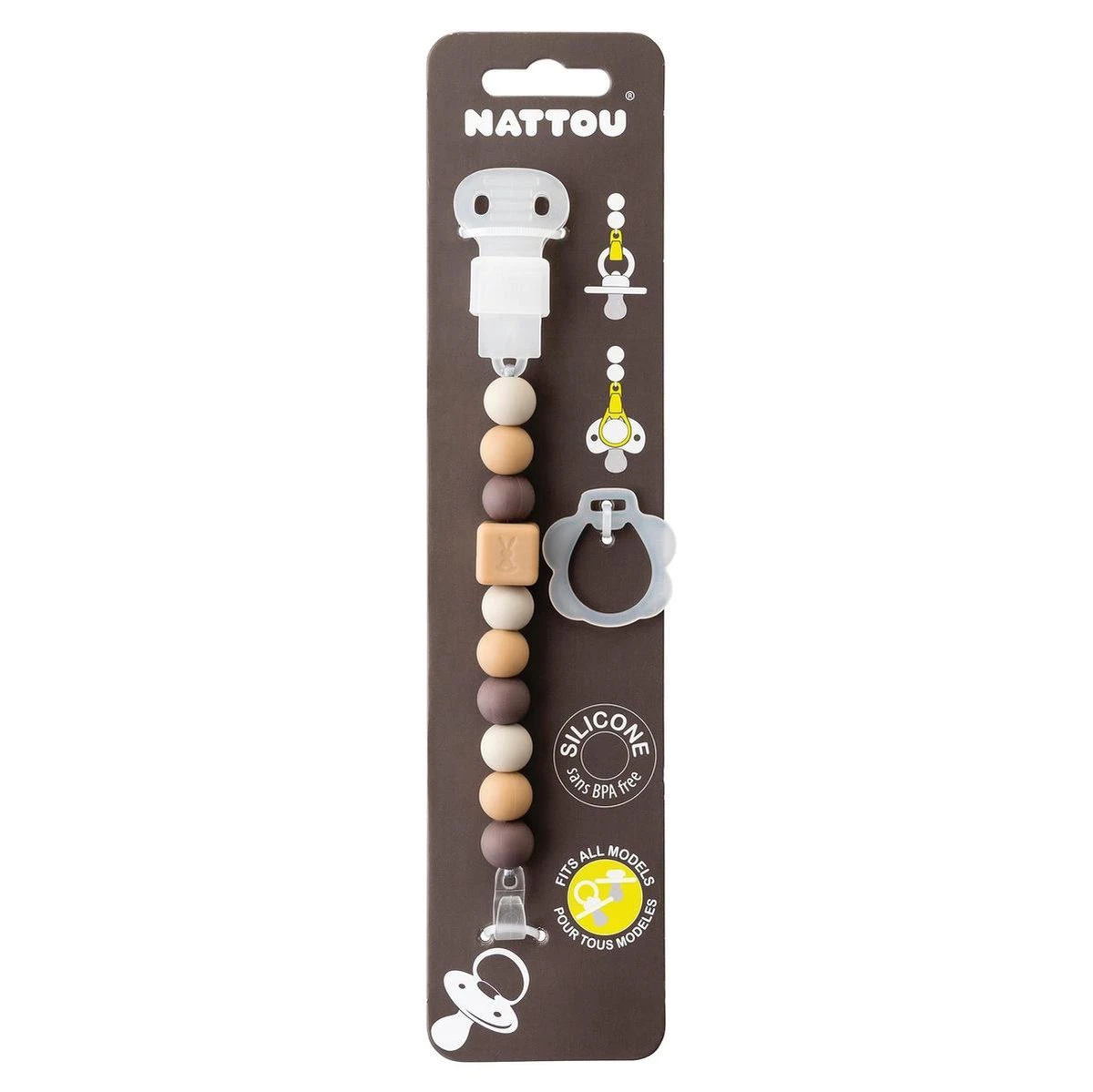 Nattou Siliconen Speenkoord – Fopspeenketting – Universeel – BPA Vrij – Bruin