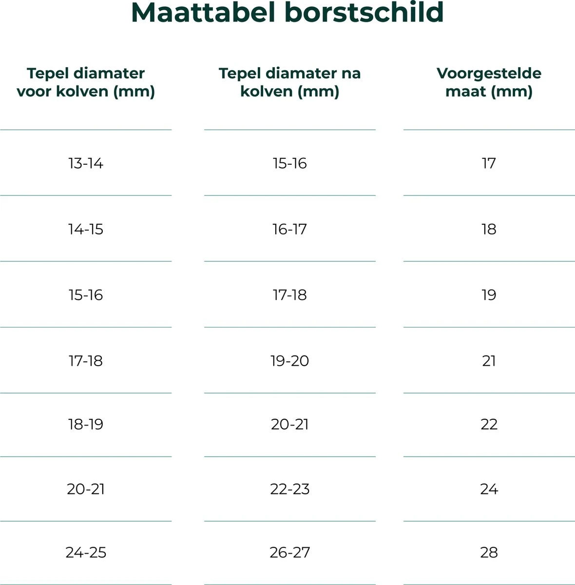Een goed passend borstschild voorkomt het samendrukken van klierweefsel en melkkanalen in de borst. Het juiste borstschild helpt om de melkproductie op gang te houden en de lactatie te ondersteunen. Voor veilig en effectief afkolven is een passend borstschild dus erg belangrijk.