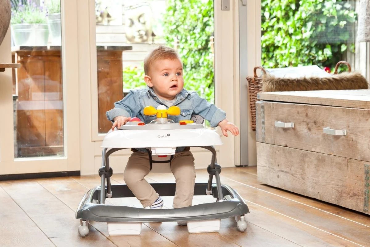 Met de Qute Limo Loopstoel leert uw kindje op een speelse manier om de eerste stapjes te zetten. De rug van uw kindje wordt goed ondersteund, dit zorgt ervoor dat uw kindje comfortabel zit. U kunt de hoogte van het zitje in 3 standen zetten, zo kan uw kindje lang gebruik maken van de loopstoel. Het speelpaneel met een stuurtje, vrolijke geluiden en gekleurde drukknoppen zorgt voor veel fantasie bij uw kindje. Bovendien is het speelpaneel afneembaar zodat uw kindje er ook mee op de vloer of in de box kan spelen. Wanneer uw kindje is uitgespeeld kunt u de stoel tot een compact pakket opvouwen en kunt u deze gemakkelijk opbergen. Verder is de Qute loopstoel gemaakt van hoogwaardig materiaal en geschikt voor kindjes van 6 tot 24 maanden.