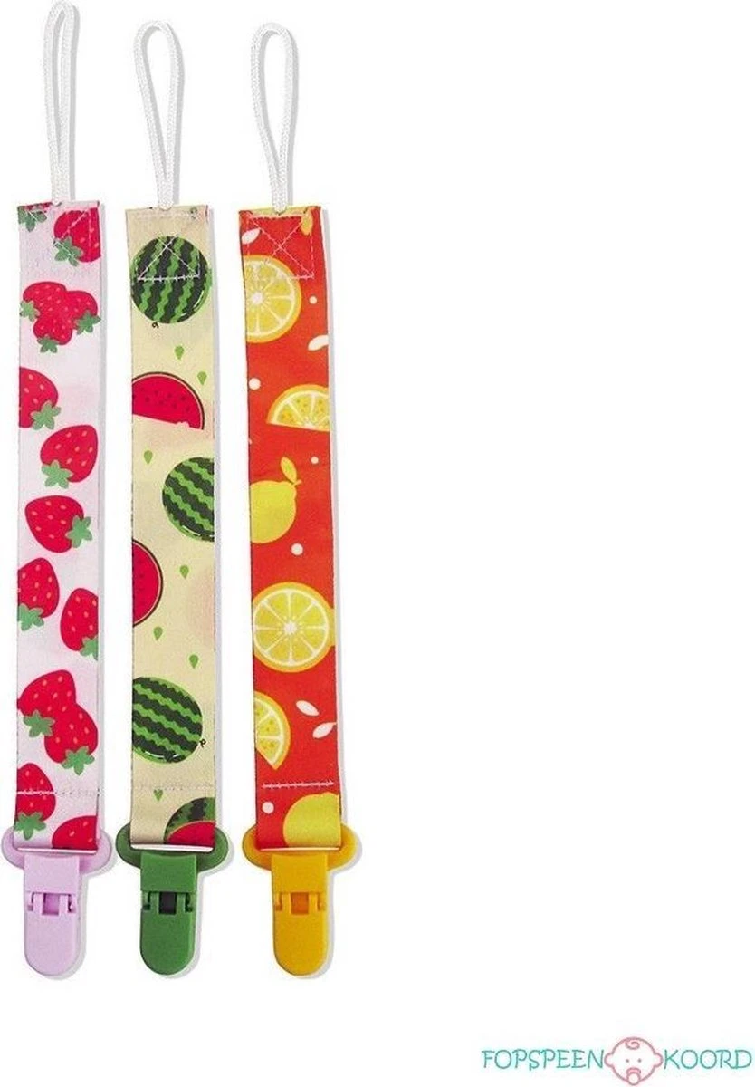 Misschien niet favoriet bij alle kleintjes: fruit! Met deze leuke set speenkoorden kun je daar wellicht wat verandering in brengen. Ze zorgen in ieder geval dat die kostbare fopspenen niet continu kwijtraken en op de grond vallen