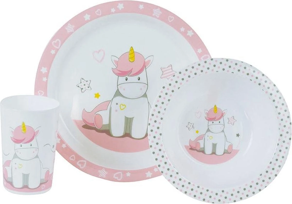 Unicorn ontbijtset. Lief ontbijtsetje met een afbeelding van een Unicorn. Gezellig voor thuis of op de camping.