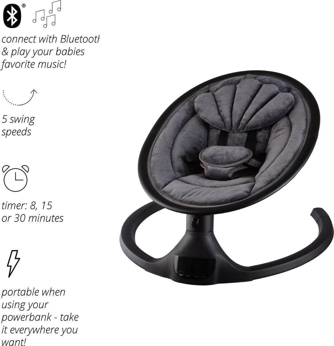 X Adventure Wipstoel Elektrisch Rocco / Schommelstoel Met Bluetoothfunctie & Afstandsbediening- Velvet Antra